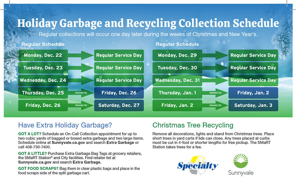 If pickup isn’t possible, we’ll leave a tag on your cart explaining why not. We’re not able to pick up the following items. For more information, please refer to Sunnyvale Recycles Right PDF, Smart Station Services PDF, Recycling’s Dirty Dozen or the Avoid the Dirty Dozen PDF.